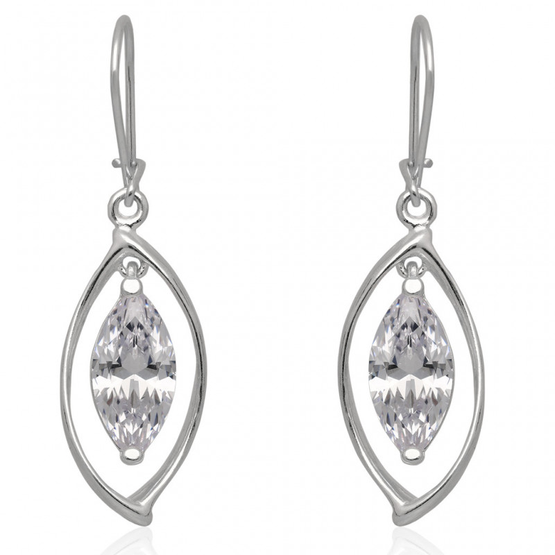 Piękne kolczyki na biglu wykonane ze srebra najwyższej próby 925 ozdobione cyrkoniami w kolorze kryształowym.
