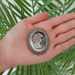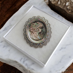 Przedmiotem sprzedaży jest piękna oksydowana* broszka ozdobiona masą perłową i markazytami.Bransoletka wykonana z najwyższej jakości srebra próby 925.