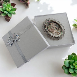 Broszka jest nowa z metką jubilerską, posiada wybitą próbę 925 lub znak imienny producenta potwierdzający autentyczność metalu szlachetnego.