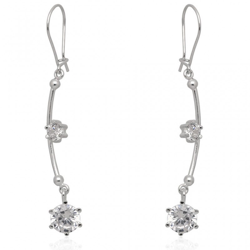 Piękne kolczyki na biglu wykonane ze srebra najwyższej próby 925 ozdobione cyrkoniami w kolorze kryształowym.