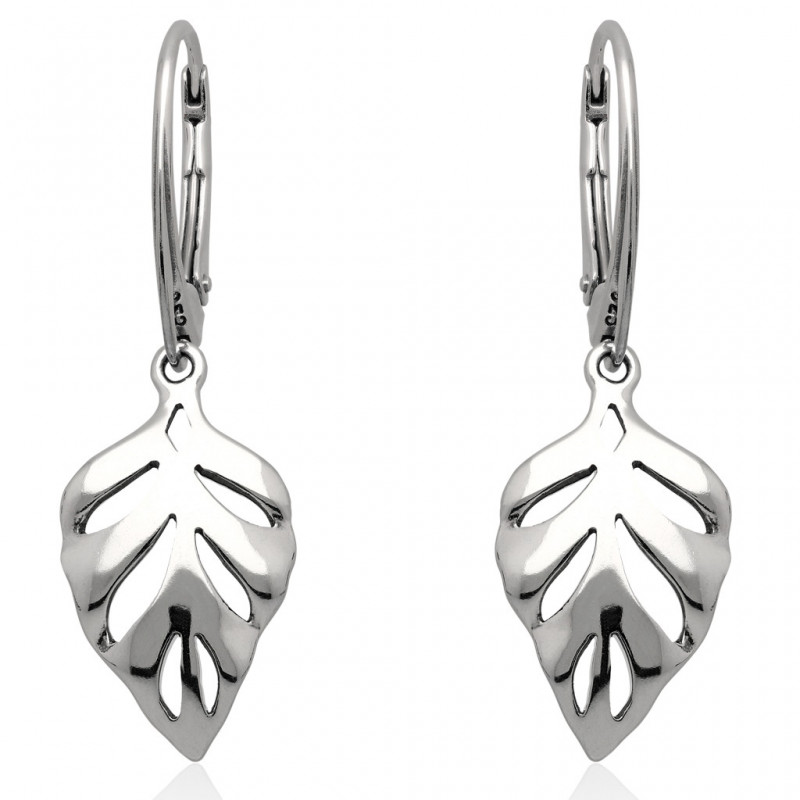 Kolczyki srebrne angielskie listek liść pr.925