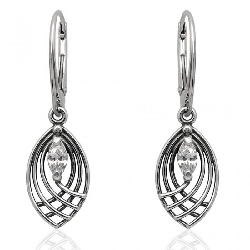 Przedmiotem sprzedaży są piękne oksydowane* kolczyki na angielskim zapięciu wykonane z najwyższej jakości srebra próby 925 wysadzane kryształowymi cyrkoniami.