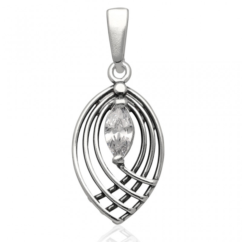 Przedmiotem sprzedaży jest piękny oksydowany* wisior wykonany z najwyższej jakości srebra próby 925 ozdobiony kryształową cyrkonią.
