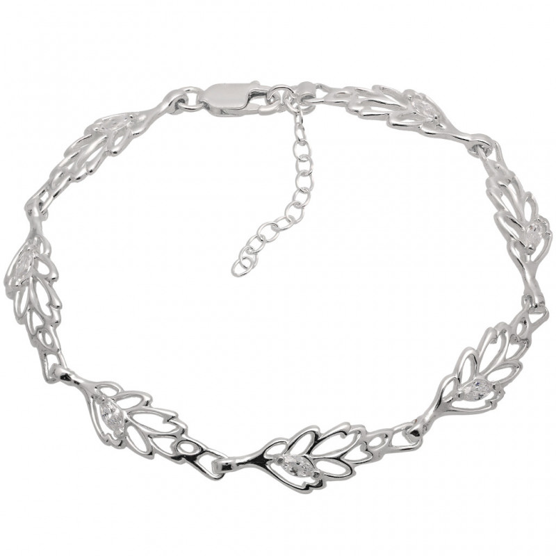 Przedmiotem sprzedaży jest piękna bransoleta listek wykonana z najwyższej jakości srebra próby 925 wysadzana kryształowymi cyrkoniami.