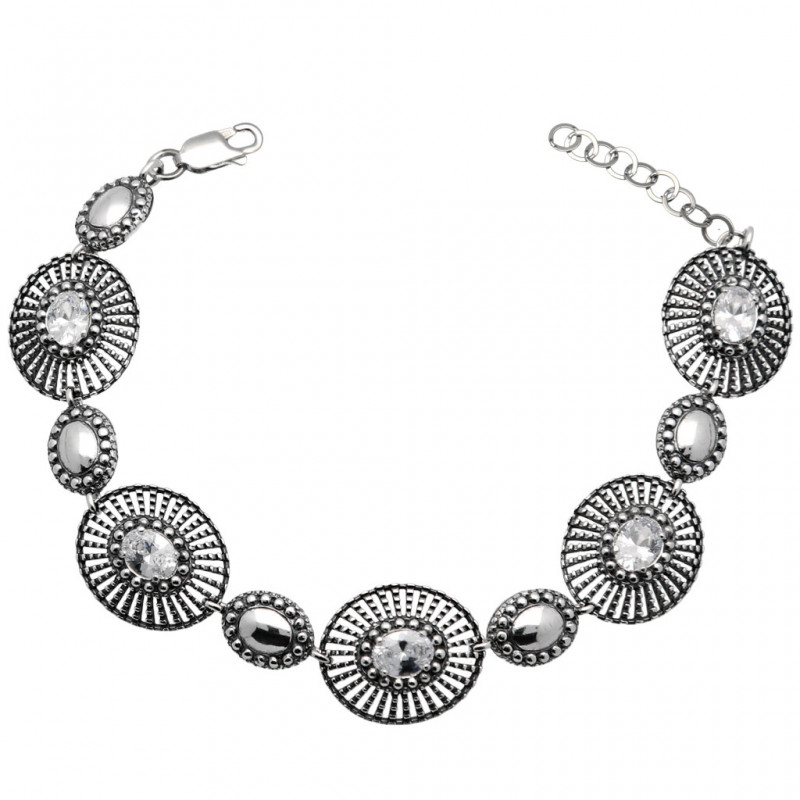 Przedmiotem sprzedaży jest piękna oksydowana* bransoleta wykonana z najwyższej jakości srebra próby 925 wysadzana kryształowymi cyrkoniami.