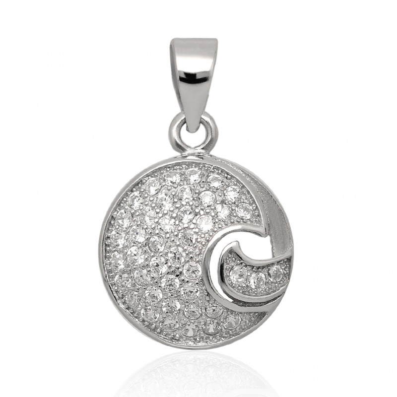 Przedmiotem sprzedaży jest piękny rodowany* wisior wykonany z najwyższej jakości srebra próby 925 wysadzany kryształowymi cyrkoniami.