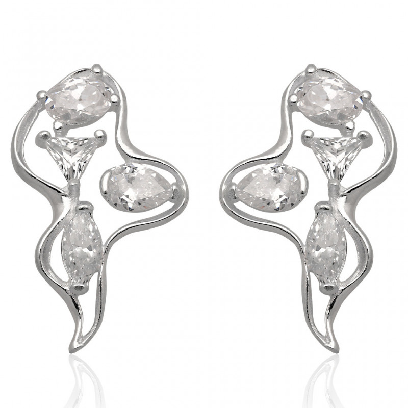 Piękne kolczyki na sztyfcie wykonane ze srebra najwyższej próby 925 ozdobione cyrkoniami w kolorze kryształowym.