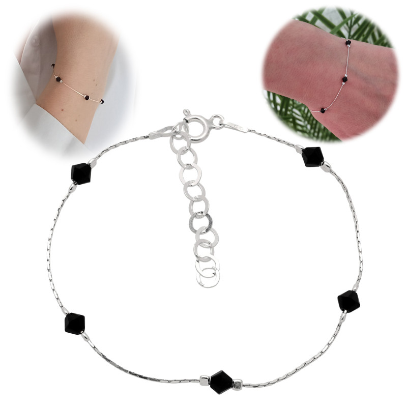 Przedmiotem sprzedaży jest piękna bransoleta wykonana z najwyższej jakości srebra próby 925 ozdobiona cyrkoniami w kolorze czarnym.