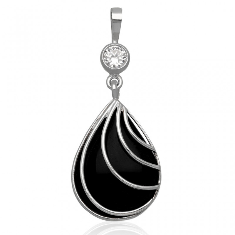 Przedmiotem sprzedaży jest piękny wisior wykonany z najwyższej jakości srebra próby 925 ozdobiony onyksem i kryształową cyrkonią.