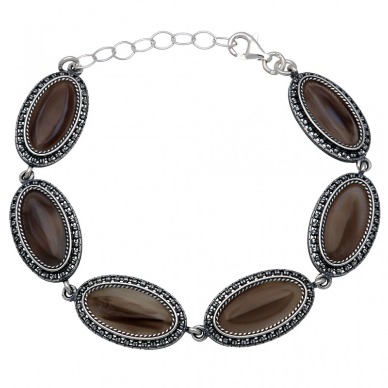Przedmiotem sprzedaży jest piękna bransoleta wykonana z najwyższej jakości srebra próby 925 ozdobiona kwarcem w kolorze brązowym.