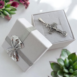 Krzyżyk jest nowy z metką jubilerską, posiada wybitą próbę 925 lub znak imienny producenta potwierdzający autentyczność metalu szlachetnego.