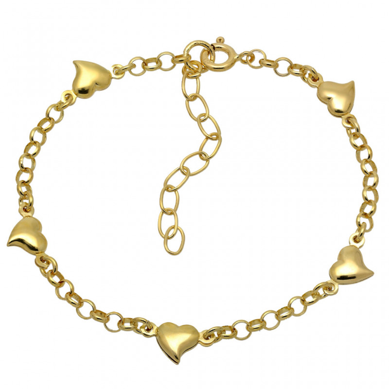 Przedmiotem sprzedaży jest piękna pozłacana* bransoleta z przywieszkami w kształcie serca, wykonana z najwyższej jakości srebra próby 925.