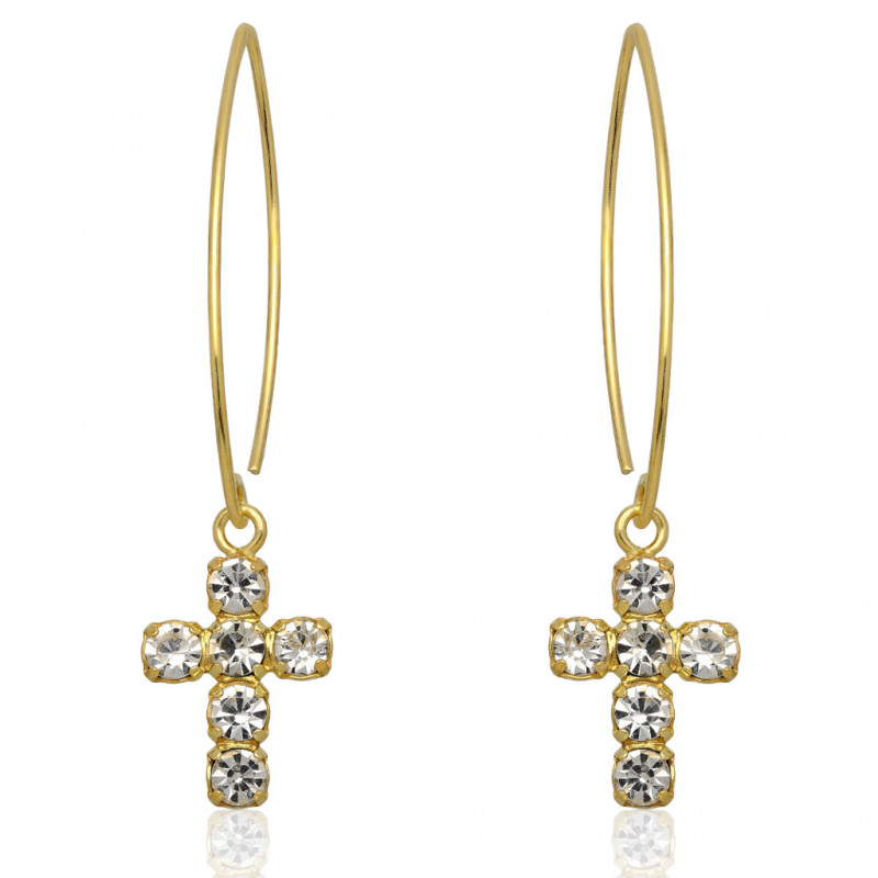 Przedmiotem sprzedaży są piękne pozłacane* kolczyki krzyżyki na biglu typu rybka wykonane z najwyższej jakości srebra próby 925 wysadzane kryształowymi symilkami.