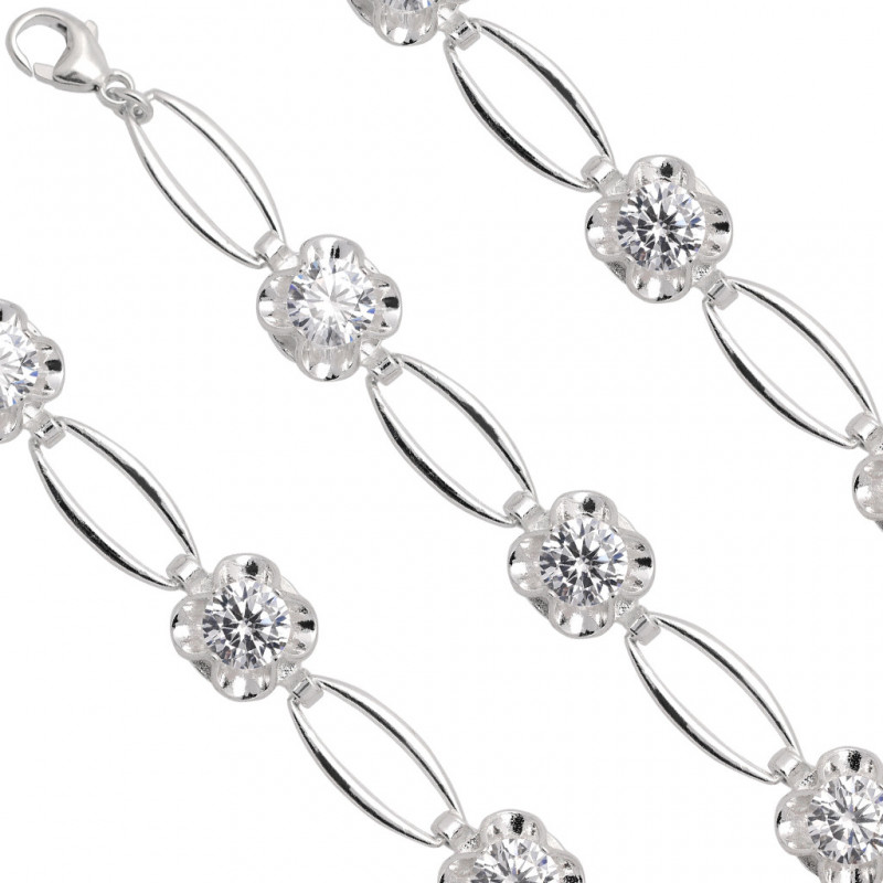 Przedmiotem sprzedaży jest piękna bransoleta wykonana z najwyższej jakości srebra próby 925 wysadzana kryształowymi cyrkoniami.
