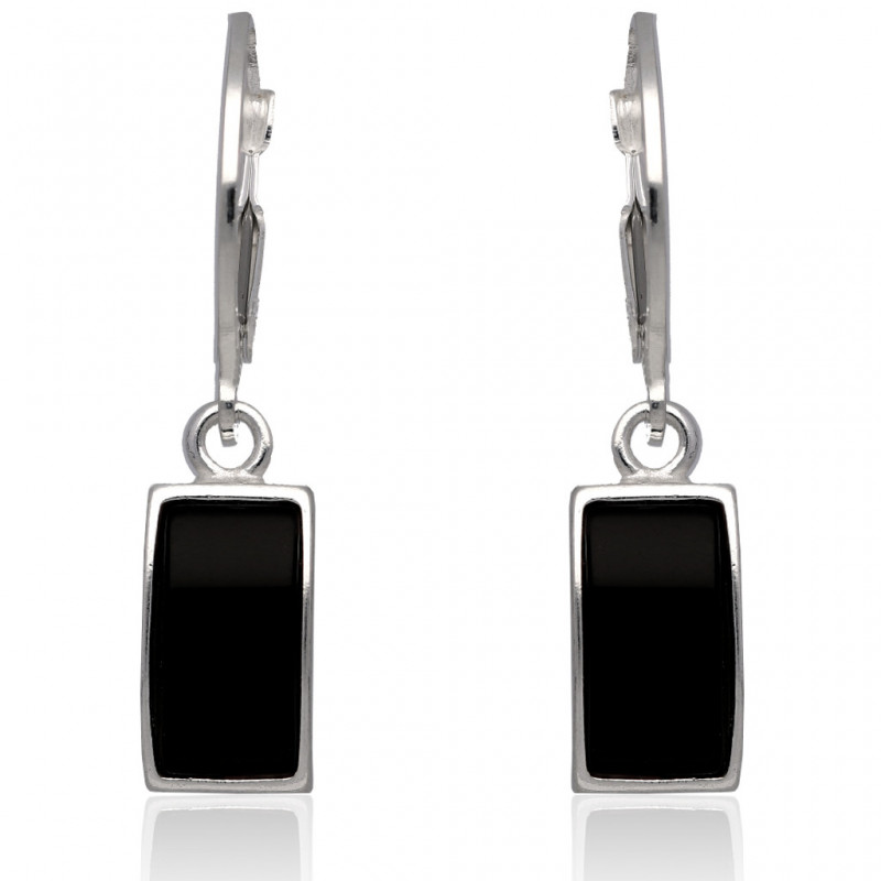 Piękne kolczyki na angielskim zapięciu wykonane ze srebra najwyższej próby 925 ozdobione onyksem w kolorze czarnym.