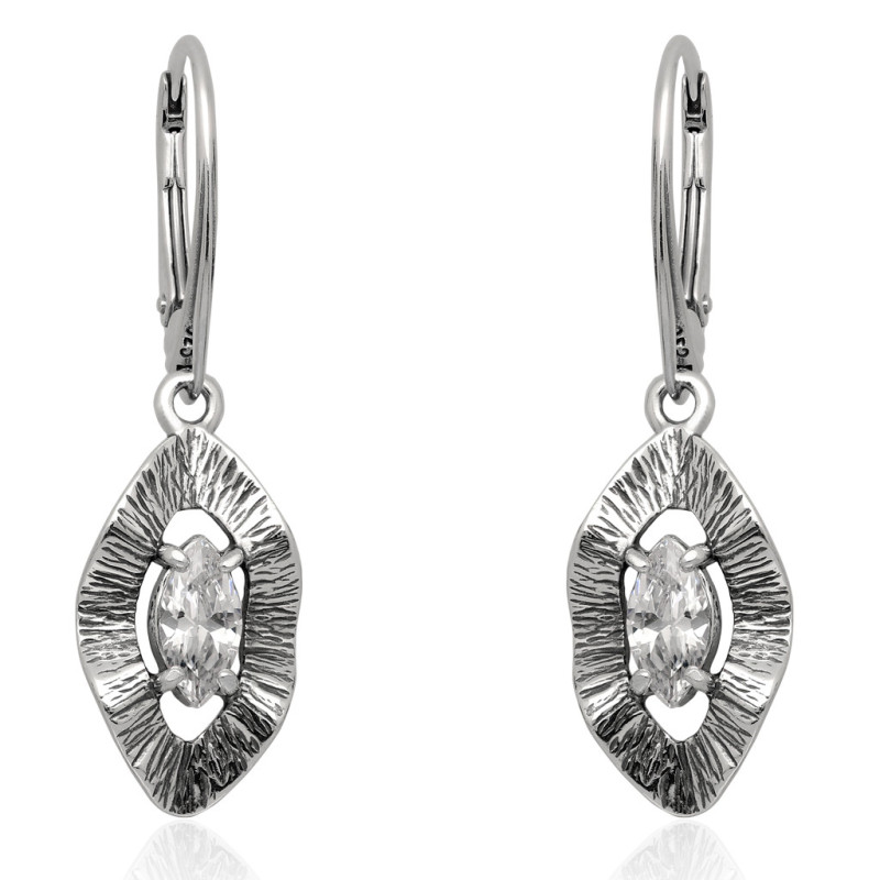 Przedmiotem sprzedaży są piękne oksydowane* kolczyki na angielskim zapięciu wykonane z najwyższej jakości srebra próby 925 wysadzane kryształowymi cyrkoniami.