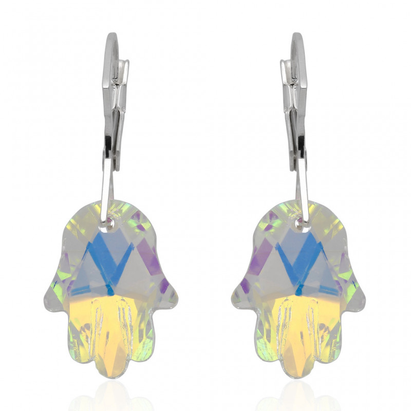 Piękne kolczyki na angielskim zapięciu wykonane ze srebra najwyższej próby 925 ozdobione kryształami Swarovskiego w kolorze crystal AB.