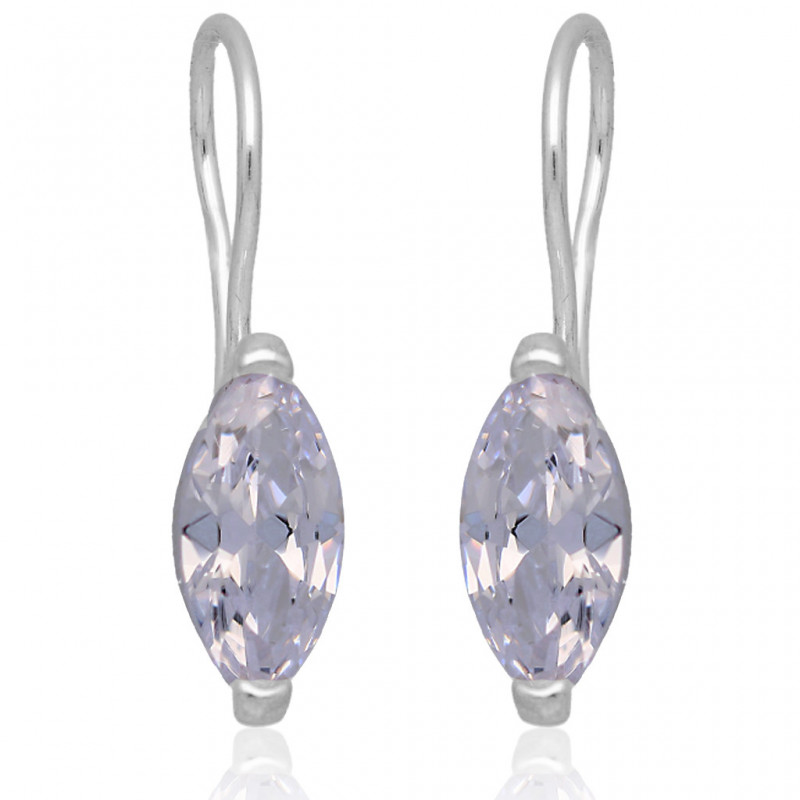 Piękne kolczyki na biglu wykonane ze srebra najwyższej próby 925 ozdobione cyrkoniami w kolorze kryształowym.