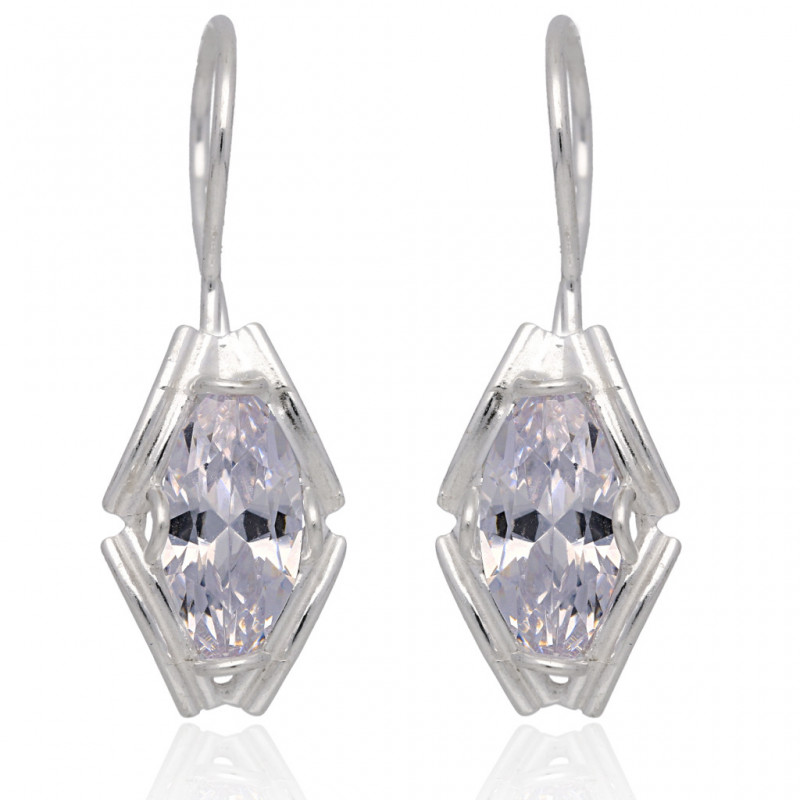 Piękne kolczyki na biglu wykonane ze srebra najwyższej próby 925 ozdobione cyrkoniami w kolorze kryształowym.
