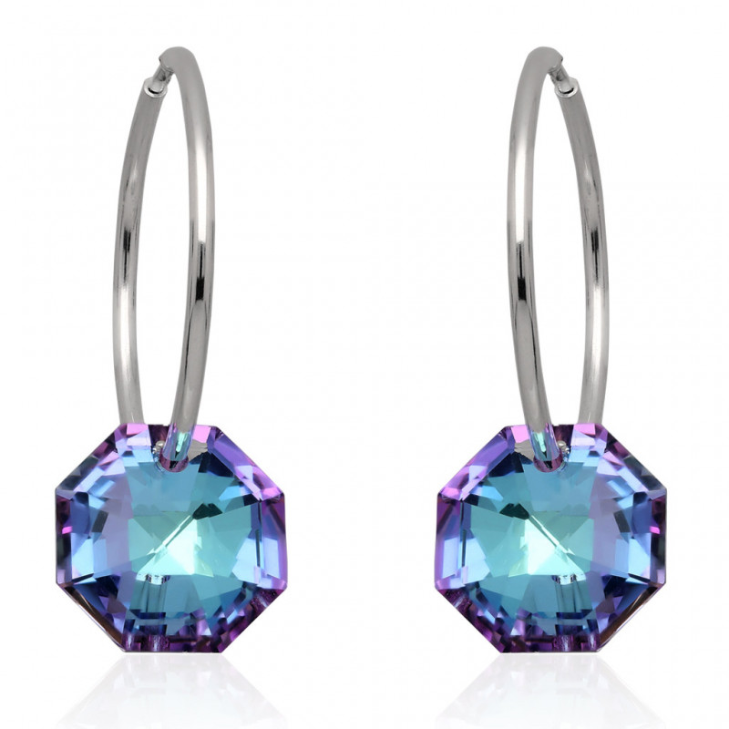 Przedmiotem sprzedaży są piękne kolczyki koła wykonane z najwyższej jakości srebra próby 925 ozdobione kryształami swarovskiego.