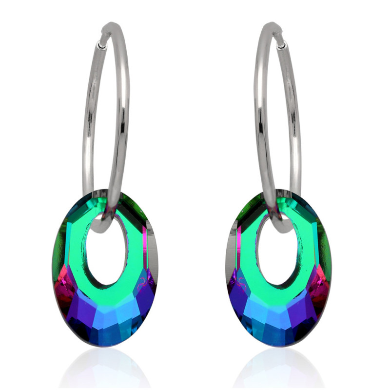 Przedmiotem sprzedaży są piękne kolczyki koła wykonane z najwyższej jakości srebra próby 925 ozdobione kryształami swarovskiego.