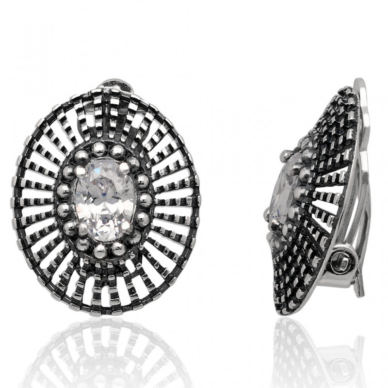 Przedmiotem sprzedaży są piękne oksydowane* klipsy wykonane z najwyższej jakości srebra próby 925 wysadzane kryształowymi cyrkoniami.