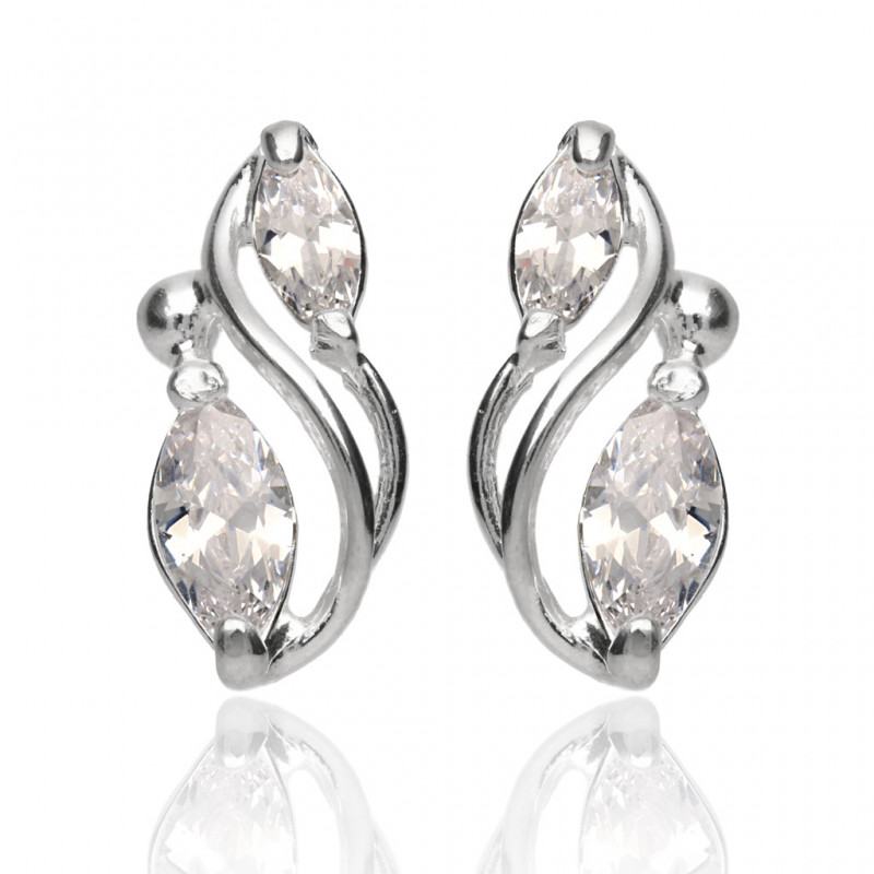 Piękne kolczyki na sztyfcie wykonane ze srebra najwyższej próby 925 ozdobione cyrkoniami w kolorze kryształowym.