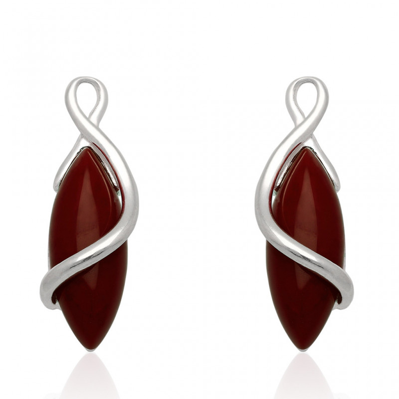 Piękne kolczyki na sztyfcie wykonane ze srebra najwyższej próby 925 ozdobione cynoberem w kolorze bordowym.