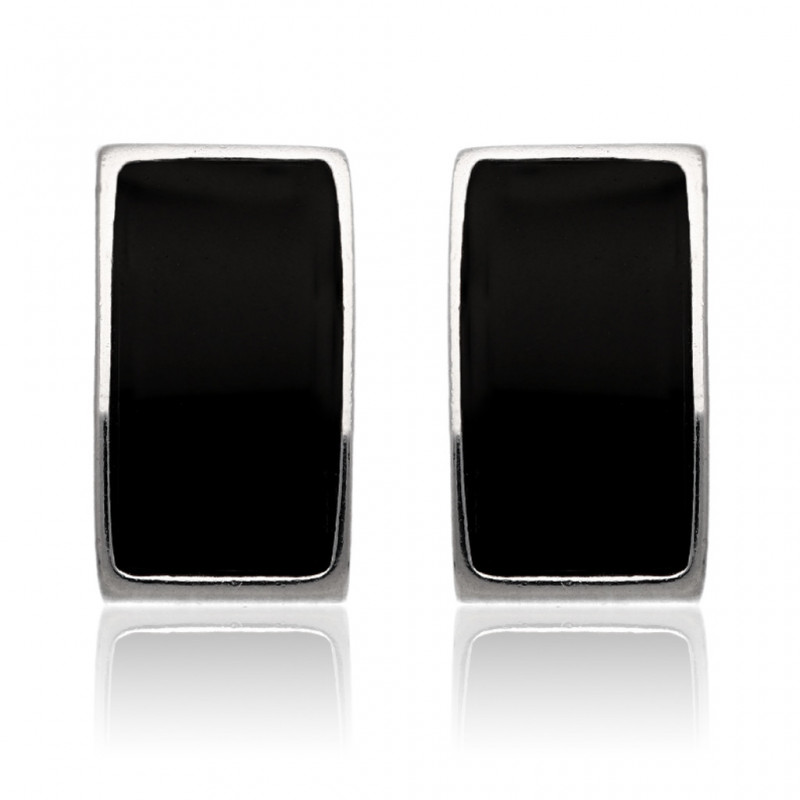 Piękne kolczyki na sztyfcie wykonane ze srebra najwyższej próby 925 ozdobione onyksem w kolorze czarnym.