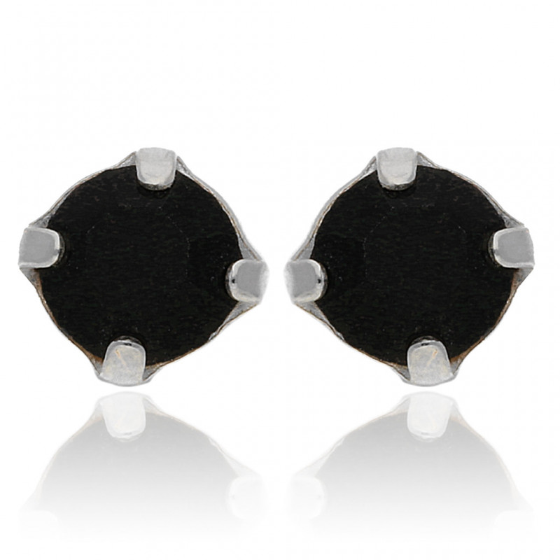 Piękne kolczyki na sztyfcie wykonane ze srebra najwyższej próby 925 ozdobione symilkami w kolorze czarnym.