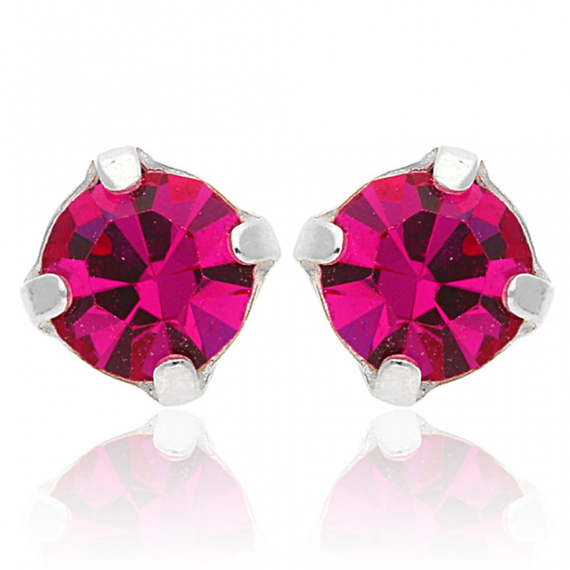 Piękne kolczyki na sztyfcie wykonane ze srebra najwyższej próby 925 ozdobione symilkami w kolorze fuksja.