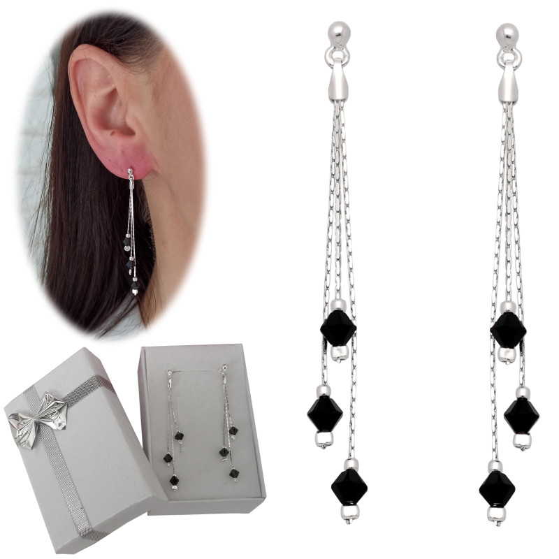Piękne kolczyki na sztyfcie wykonane ze srebra najwyższej próby 925 ozdobione cyrkoniami w kolorze czarnym.