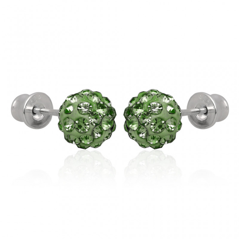 Kolczyki shamballa kule zielone 8mm pr.925