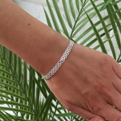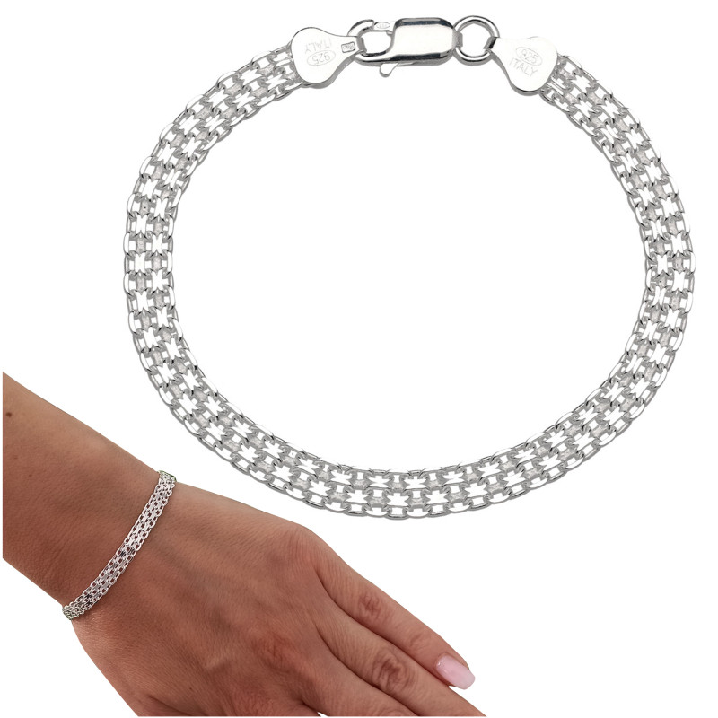 Przedmiotem sprzedaży jest bransoletka srebrna Bismark. Bransoletka jest nowa z metką jubilerską. Solidnie i precyzyjnie wykonana przez Włoskich producentów z najwyższej jakości srebra próby 925. Bransoletka jest diamentowana dzięki czemu pięknie się błyszczy.