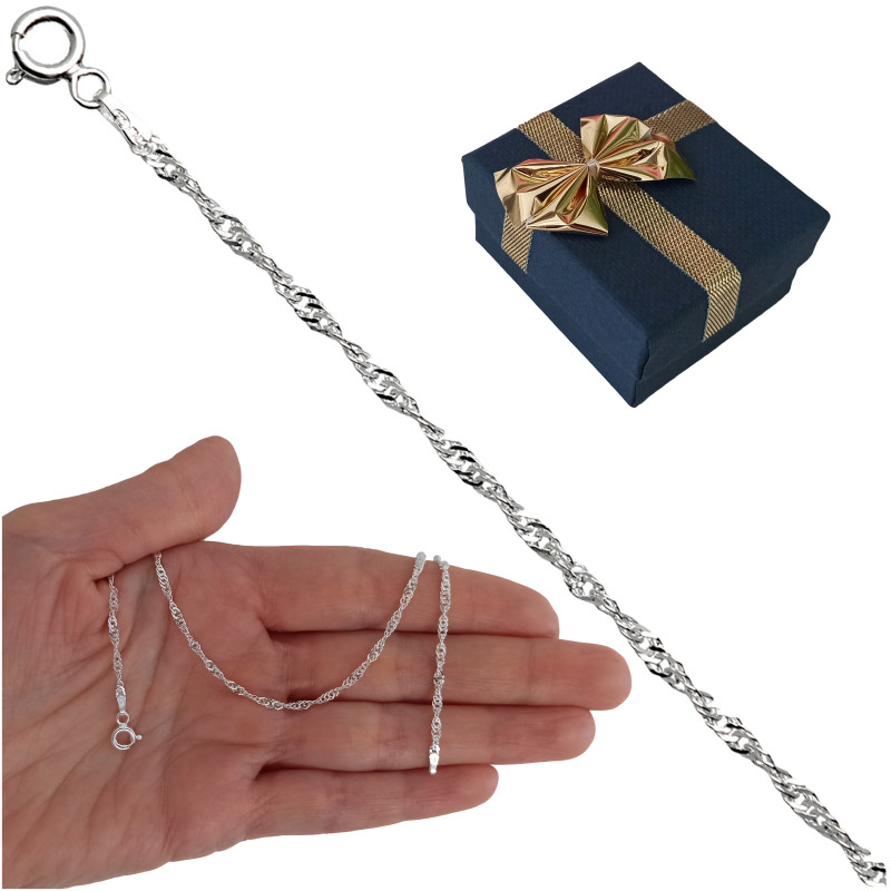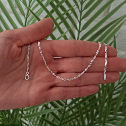 Przedmiotem sprzedaży jest łańcuszek srebrny Singapur. Łańcuszek jest nowy z metką jubilerską. Solidnie i precyzyjnie wykonany przez Włoskich producentów z najwyższej jakości srebra próby 925. Łańcuszek jest diamentowany dzięki czemu pięknie się błyszczy.