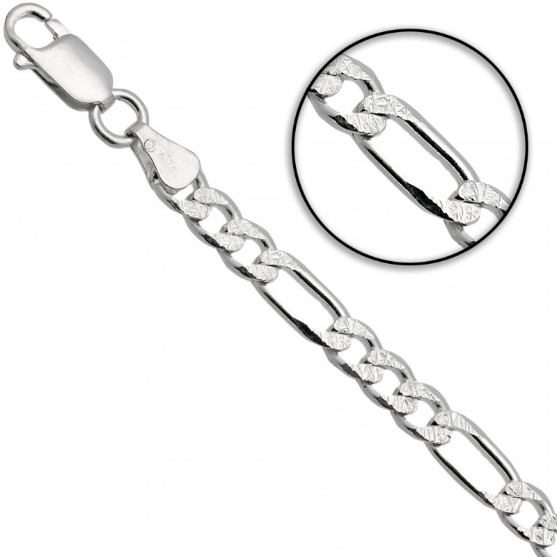 Przedmiotem sprzedaży jest łańcuszek srebrny Figaro grawerowane. Łańcuszek jest nowy z metką jubilerską. Solidnie i precyzyjnie wykonany przez Włoskich producentów z najwyższej jakości srebra próby 925. Łańcuszek jest diamentowany dzięki czemu pięknie się błyszczy.
