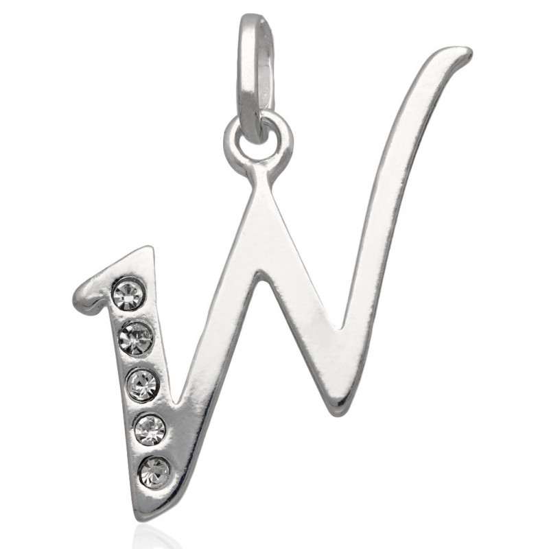 Wisiorek srebrny literka W z cyrkoniami pr.925