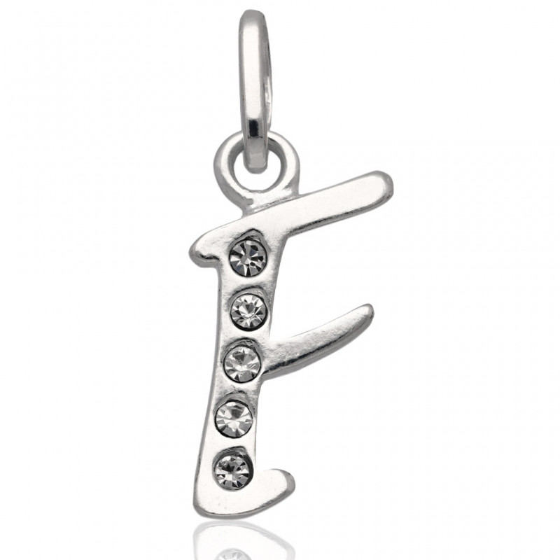 Wisiorek srebrny literka F z cyrkoniami pr.925