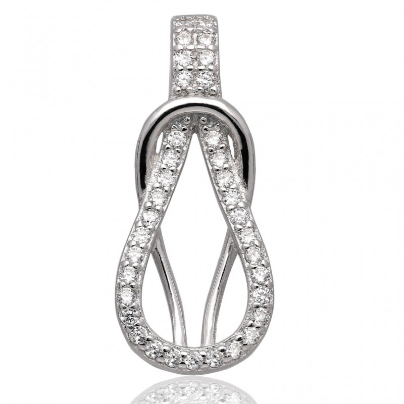Przedmiotem sprzedaży jest piękny rodowany* wisior wykonany z najwyższej jakości srebra próby 925 wysadzany kryształowymi cyrkoniami.