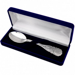 Łyżeczka idealnie nadaje się na prezent z okazji chrztu lub jako pamiątka narodzin dziecka. Wykonany w całości ze srebra próby 925