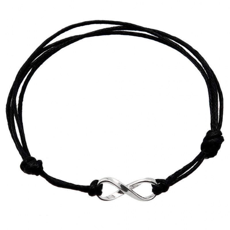 Przedmiotem sprzedaży jest bransoletka sznurkowa z zawieszką w kształcie znaku nieskończoności wykonanego z najwyższej jakości srebra próby 925.