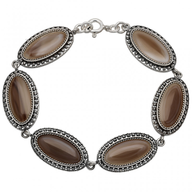 Przedmiotem sprzedaży jest piękna bransoleta wykonana z najwyższej jakości srebra próby 925 ozdobiona kwarcem w kolorze brązowym.