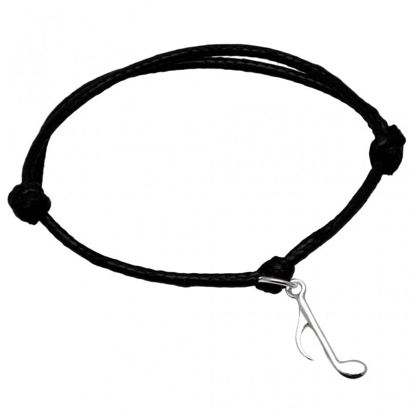 Przedmiotem sprzedaży jest bransoletka sznurkowa z zawieszką w kształcie nutki wykonanej z najwyższej jakości srebra próby 925.