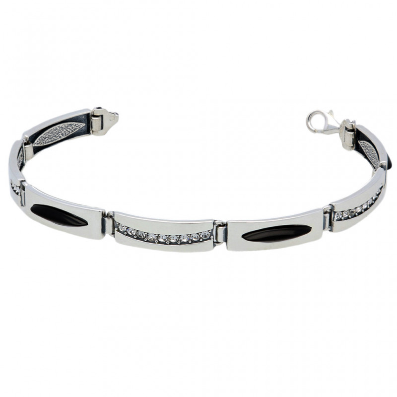Przedmiotem sprzedaży jest piękna bransoleta wykonana z najwyższej jakości srebra próby 925 ozdobiona onyksem i symilkami.
