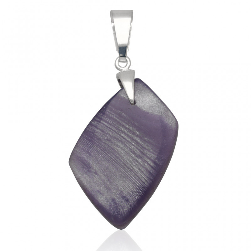 Przedmiotem sprzedaży jest piękny wisior wykonany z najwyższej jakości srebra próby 925 ozdobiony masą perłową w kolorze fioletowym.