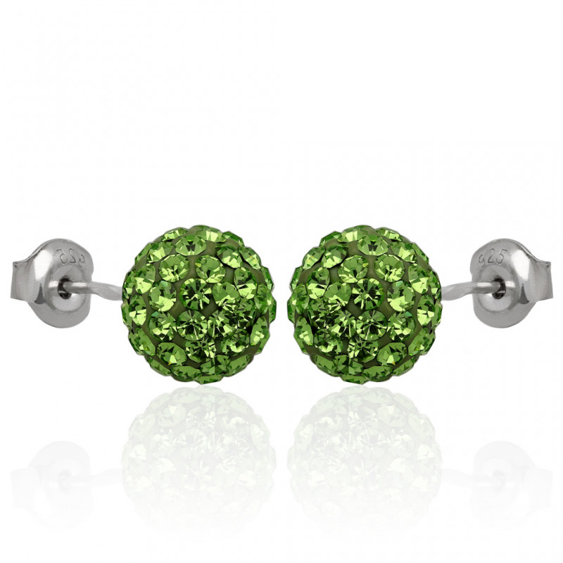 Kolczyki shamballa kule zielone 8mm pr.925