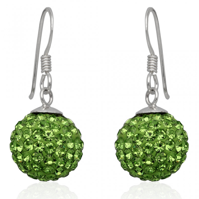 Piękne kolczyki na biglu wykonane ze srebra najwyższej próby 925 ozdobione kamieniem discoball w kolorze zielonym.