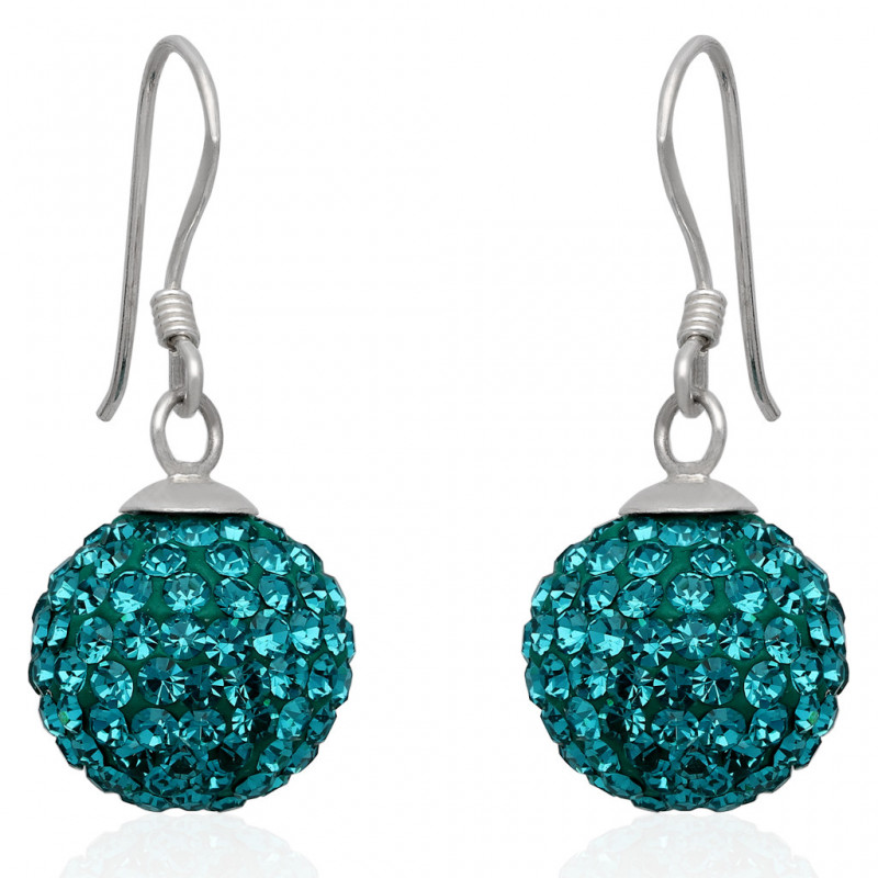Piękne kolczyki na biglu wykonane ze srebra najwyższej próby 925 ozdobione kamieniem discoball w kolorze turkusowym.