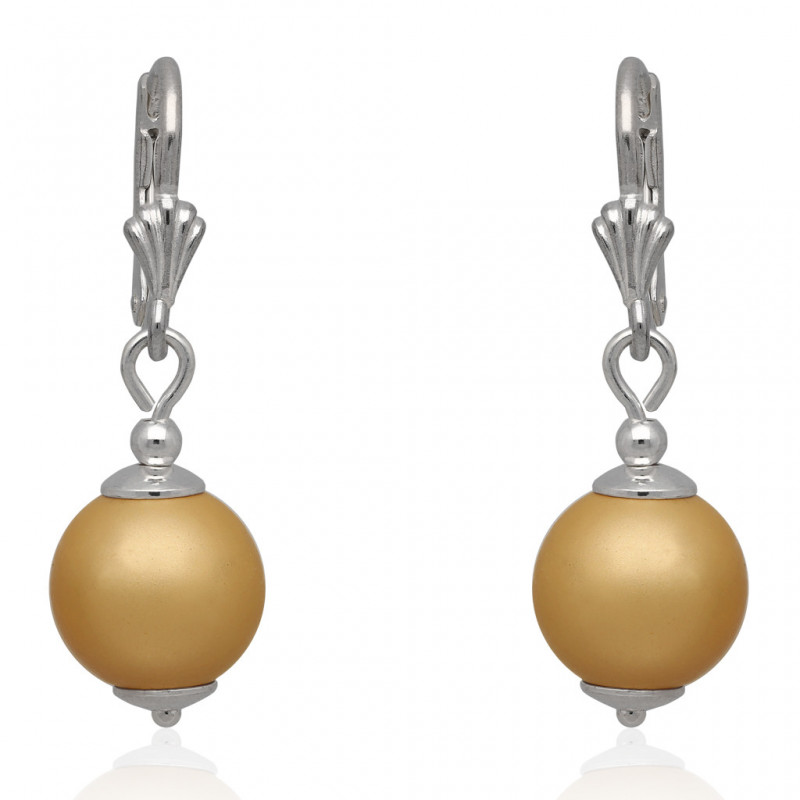 Piękne kolczyki na angielskim zapięciu wykonane ze srebra najwyższej próby 925 ozdobione perełkami w kolorze złotym.