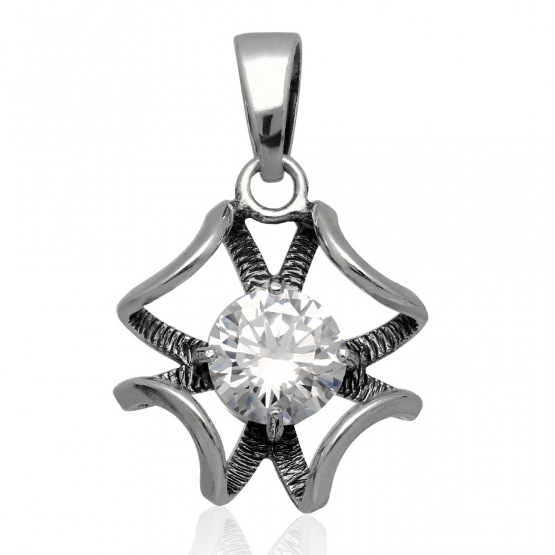 Przedmiotem sprzedaży jest piękny oksydowany* wisior wykonany z najwyższej jakości srebra próby 925 ozdobiony kryształową cyrkonią.